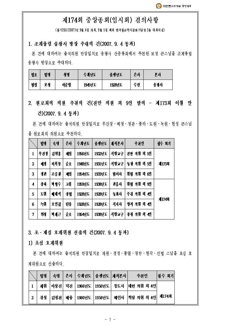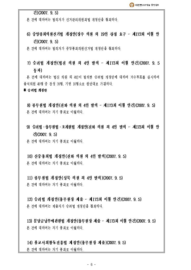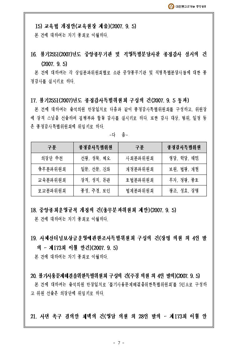 Á¦173ȸ Áß¾ÓÁ¾È¸(ÀÓ½Ãȸ2007-03-26~29) °áÀÇ»çÇ×