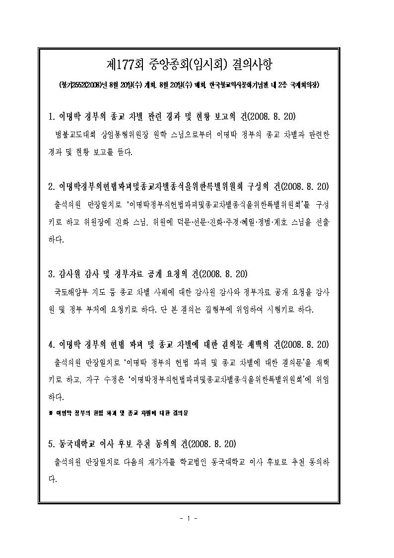 Á¦177ȸ Áß¾ÓÁ¾È¸(ÀÓ½Ãȸ) °áÀÇ»çÇ×